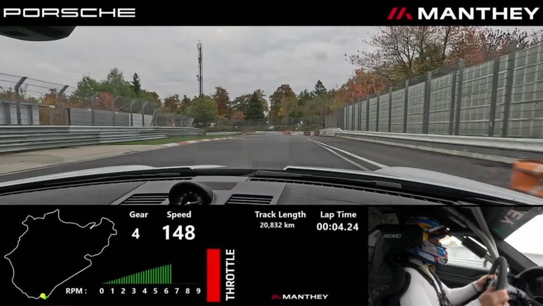 En Nürburgring Nordschleife, tradicionalmente el laboratorio de pruebas de Porsche para coches deportivos, el 911 GT3 con Kit Manthey puede sacar todo su potencial. Con el actual campeón del DTM Ayhancan Güven al volante, el deportivo GT modificado completó los 20,8 kilómetros en condiciones poco favorables en 6:52,981 minutos, lo que supone una mejora de 2,76 segundos con respecto a la generación anterior (992.1) del 911 GT3 con Kit Manthey. Ambos vehículos estaban equipados con los neumáticos Michelin Pilot Sport Cup 2 R, disponibles opcionalmente. El tiempo de vuelta fue certificado por un notario presente en el lugar.